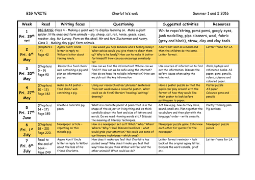 Charlotte S Web Big Write Overview Lesson Plans And Resources Teaching Resources